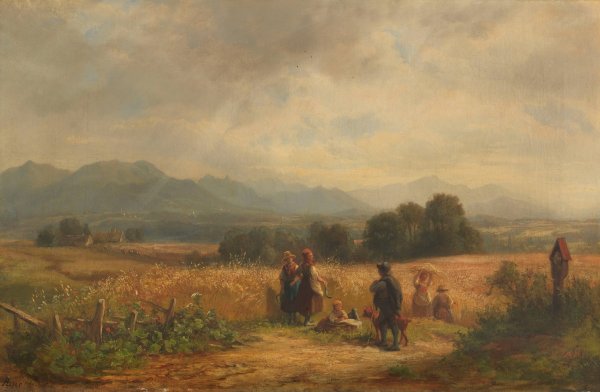 Erntetag in Oberbayern bei Habach by Adolf Heinrich Lier is a hand-painted oil painting reproduction on canvas painted by one of our highly skilled artists. All of our Adolf Heinrich Lier oil painting reproductions are meticulously painted to the highest museum quality by our master artists utilizing the finest quality oil paints on artist grade cotton canvas.