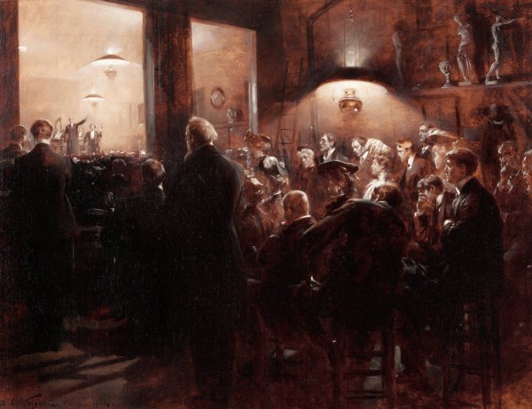 In the Saleroom by Andre Castaigne is a hand-painted oil painting reproduction on canvas painted by one of our highly skilled artists. All of our Andre Castaigne oil painting reproductions are meticulously painted to the highest museum quality by our master artists utilizing the finest quality oil paints on artist grade cotton canvas.