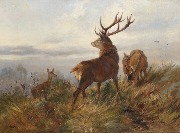 Rotwild in der Morgendammerung by Carl Friedrich Deiker is guaranteed to be hand-painted on canvas by a master artist that has years of training and experience in capturing every brushstroke detail, color palette, and overall beauty of the original oil painting.