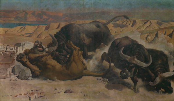 Defending the Herd by Charles Verlat is guaranteed to be hand-painted on canvas by a master artist that has years of training and experience in capturing every brushstroke detail, color palette, and overall beauty of the original oil painting.