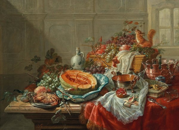 Porcelain, silver objects, fruit and shellfish on a table by Dominicus Gottfried Waerdigh is a hand-painted oil painting reproduction on canvas painted by one of our highly skilled artists. All of our Dominicus Gottfried Waerdigh oil painting reproductions are meticulously painted to the highest museum quality by our master artists utilizing the finest quality oil paints on artist grade cotton canvas.
