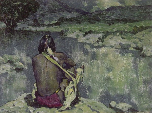 Moonlight Meditation by E. Irving Couse is a hand-painted oil painting reproduction on canvas painted by one of our highly skilled artists. All of our E. Irving Couse oil painting reproductions are meticulously painted to the highest museum quality by our master artists utilizing the finest quality oil paints on artist grade cotton canvas.