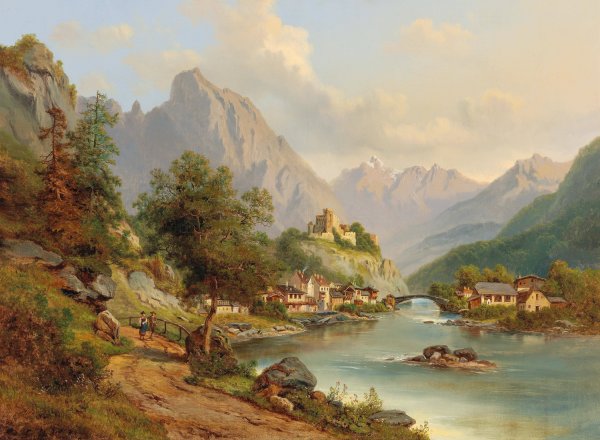 View of Landeck, Pustertal by Edmund Hod is a hand-painted oil painting reproduction on canvas painted by one of our highly skilled artists. All of our Edmund Hod oil painting reproductions are meticulously painted to the highest museum quality by our master artists utilizing the finest quality oil paints on artist grade cotton canvas.