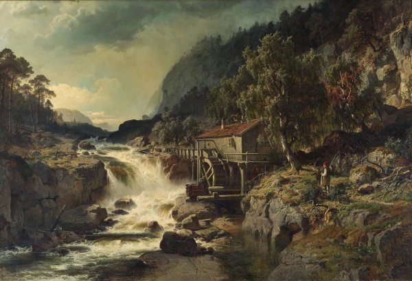 Rocky Landscape with Waterfall and Watermill, Smaland by Edvard Bergh is a hand-painted oil painting reproduction on canvas painted by one of our highly skilled artists. All of our Edvard Bergh oil painting reproductions are meticulously painted to the highest museum quality by our master artists utilizing the finest quality oil paints on artist grade cotton canvas.