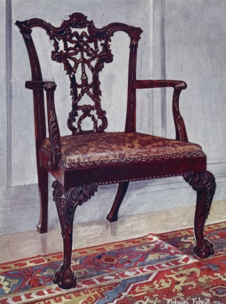 Mahogany arm-chair, style of Chippendale by Edwin Foley is a hand-painted oil painting reproduction on canvas painted by one of our highly skilled artists. All of our Edwin Foley oil painting reproductions are meticulously painted to the highest museum quality by our master artists utilizing the finest quality oil paints on artist grade cotton canvas.