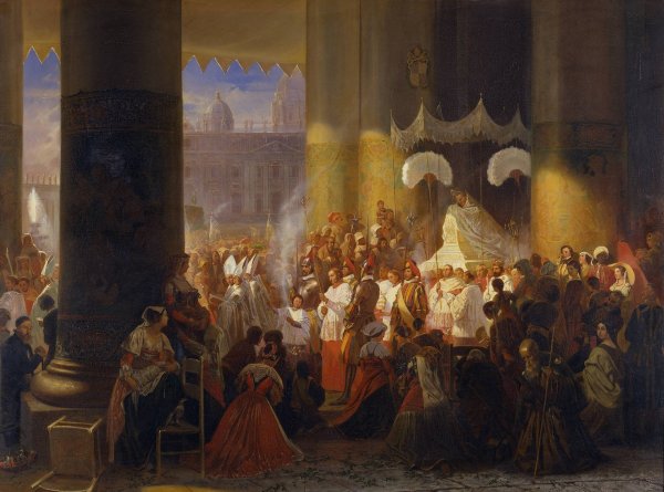 Procession at the Feast of Corpus Christi in Rome by Egron Lundgren is guaranteed to be hand-painted on canvas by a master artist that has years of training and experience in capturing every brushstroke detail, color palette, and overall beauty of the original oil painting.