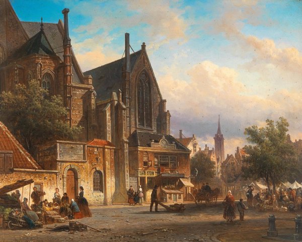 View of a Dutch Market by Elias Pieter Van Bommel is a hand-painted oil painting reproduction on canvas painted by one of our highly skilled artists. All of our Elias Pieter Van Bommel oil painting reproductions are meticulously painted to the highest museum quality by our master artists utilizing the finest quality oil paints on artist grade cotton canvas.