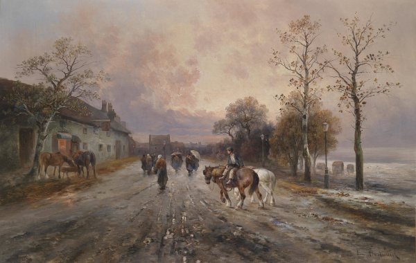 Abendstimmung uber einer Dorflandschaft by Emil Barbarini is a hand-painted oil painting reproduction on canvas painted by one of our highly skilled artists. All of our Emil Barbarini oil painting reproductions are meticulously painted to the highest museum quality by our master artists utilizing the finest quality oil paints on artist grade cotton canvas.