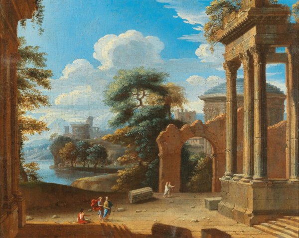A river landscape with figures by ruins by French School is guaranteed to be hand-painted on canvas by a master artist that has years of training and experience in capturing every brushstroke detail, color palette, and overall beauty of the original oil painting.