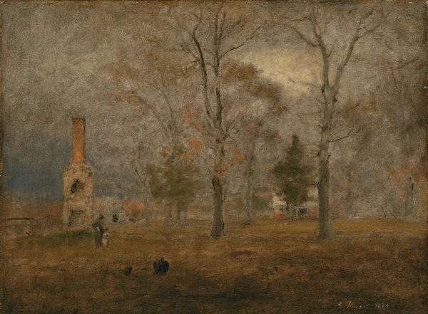 Gray Day, Goochland by George Inness is a hand-painted oil painting reproduction on canvas painted by one of our highly skilled artists. All of our George Inness oil painting reproductions are meticulously painted to the highest museum quality by our master artists utilizing the finest quality oil paints on artist grade cotton canvas.