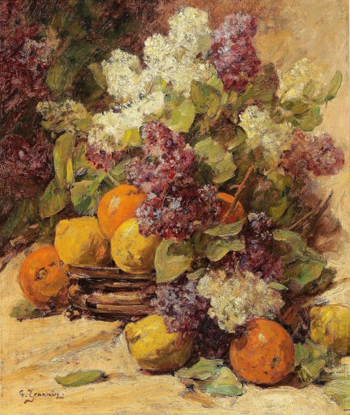 Stillleben mit einem Fliederstraus und Zitronen by Georges Jeannin is a hand-painted oil painting reproduction on canvas painted by one of our highly skilled artists. All of our Georges Jeannin oil painting reproductions are meticulously painted to the highest museum quality by our master artists utilizing the finest quality oil paints on artist grade cotton canvas.