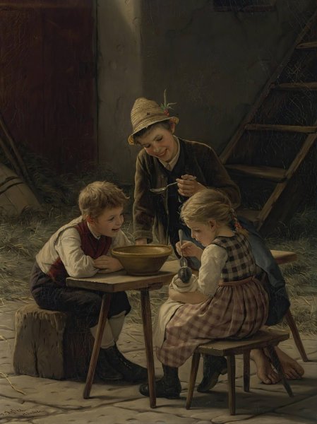 Baby doll's dinner by Gustav Igler is guaranteed to be hand-painted on canvas by a master artist that has years of training and experience in capturing every brushstroke detail, color palette, and overall beauty of the original oil painting.