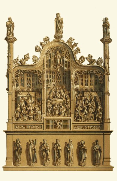 A portable altar in carved oak by Henry Noel Humphreys is a hand-painted oil painting reproduction on canvas painted by one of our highly skilled artists. All of our Henry Noel Humphreys oil painting reproductions are meticulously painted to the highest museum quality by our master artists utilizing the finest quality oil paints on artist grade cotton canvas.