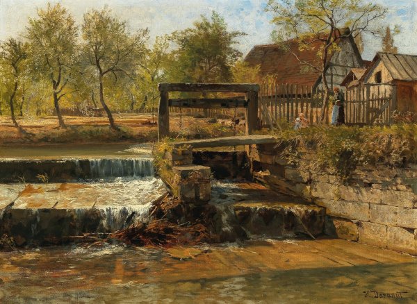 A Weir by Hugo Darnaut is a hand-painted oil painting reproduction on canvas painted by one of our highly skilled artists. All of our Hugo Darnaut oil painting reproductions are meticulously painted to the highest museum quality by our master artists utilizing the finest quality oil paints on artist grade cotton canvas.