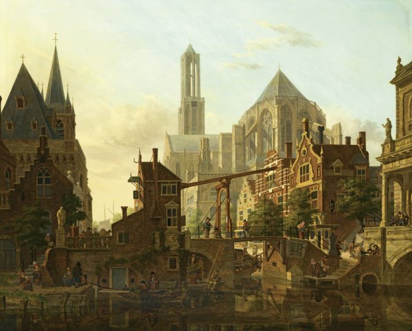 A Lively Townscene, Utrecht by Jan Hendrik Verheyen is a hand-painted oil painting reproduction on canvas painted by one of our highly skilled artists. All of our Jan Hendrik Verheyen oil painting reproductions are meticulously painted to the highest museum quality by our master artists utilizing the finest quality oil paints on artist grade cotton canvas.