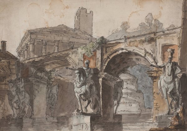 Romersk prospekt med bro, tempelruin og rytterstatue by Jens Petersen Lund is guaranteed to be hand-painted on canvas by a master artist that has years of training and experience in capturing every brushstroke detail, color palette, and overall beauty of the original oil painting.