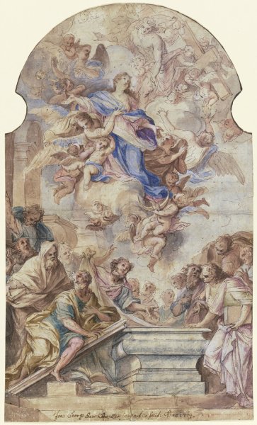 Assumption of the Virgin by Johann Georg Bergmuller is a hand-painted oil painting reproduction on canvas painted by one of our highly skilled artists. All of our Johann Georg Bergmuller oil painting reproductions are meticulously painted to the highest museum quality by our master artists utilizing the finest quality oil paints on artist grade cotton canvas.