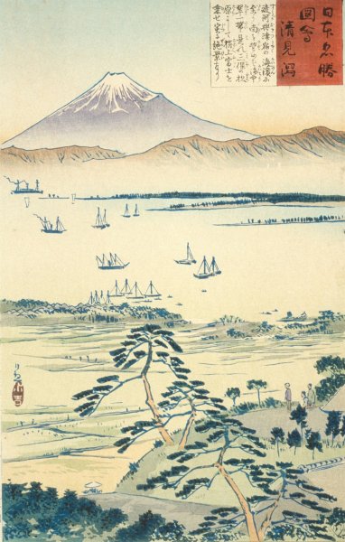 View of Fuji from the Coast of Kiyomigata by Kobayashi Kiyochika is a hand-painted oil painting reproduction on canvas painted by one of our highly skilled artists. All of our Kobayashi Kiyochika oil painting reproductions are meticulously painted to the highest museum quality by our master artists utilizing the finest quality oil paints on artist grade cotton canvas.