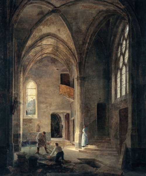 Vue interieure de l'eglise Saint-Benoit-le-Bestoune; la chapelle Saint-Pierre ou de la Tournelle by Louis Courtin is guaranteed to be hand-painted on canvas by a master artist that has years of training and experience in capturing every brushstroke detail, color palette, and overall beauty of the original oil painting.