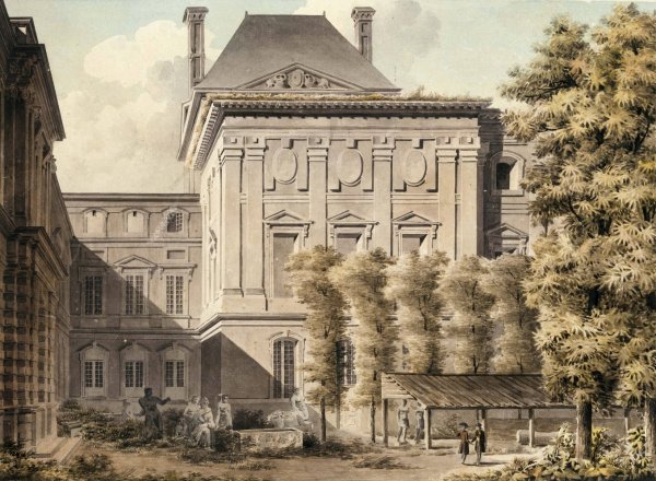 Vue de la facade dedoublant la facade de Le Vau au Louvre, cote du jardin de l'Infante by Louis-Pierre Baltard is guaranteed to be hand-painted on canvas by a master artist that has years of training and experience in capturing every brushstroke detail, color palette, and overall beauty of the original oil painting.