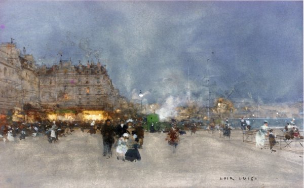Evening Promenade, Le Havre by Luigi Loir is a hand-painted oil painting reproduction on canvas painted by one of our highly skilled artists. All of our Luigi Loir oil painting reproductions are meticulously painted to the highest museum quality by our master artists utilizing the finest quality oil paints on artist grade cotton canvas.