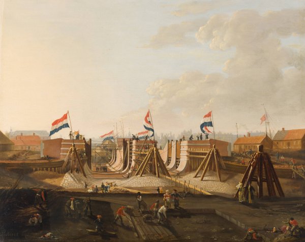 The construction of the Oosterdokssluis, seen from the north by Petrus Kiers is a hand-painted oil painting reproduction on canvas painted by one of our highly skilled artists. All of our Petrus Kiers oil painting reproductions are meticulously painted to the highest museum quality by our master artists utilizing the finest quality oil paints on artist grade cotton canvas.