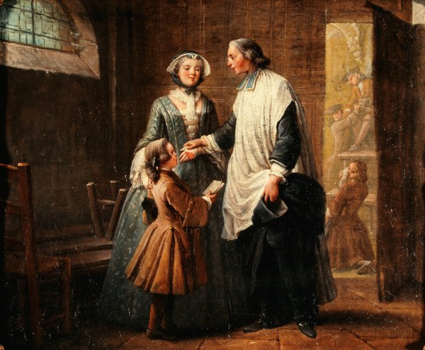 L'Abbe de Catechisme recevant un enfant amene par sa sOurs by Pierre Louis Dumesnil The Younger is a hand-painted oil painting reproduction on canvas painted by one of our highly skilled artists. All of our Pierre Louis Dumesnil The Younger oil painting reproductions are meticulously painted to the highest museum quality by our master artists utilizing the finest quality oil paints on artist grade cotton canvas.