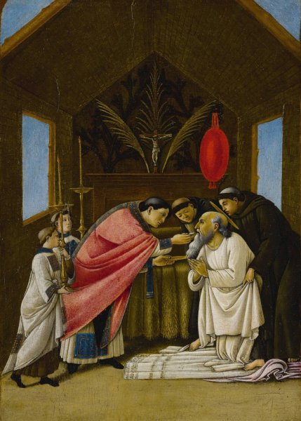 The Last Communion of Saint Jerome by Sandro Botticelli is a hand-painted oil painting reproduction on canvas painted by one of our highly skilled artists. All of our Sandro Botticelli oil painting reproductions are meticulously painted to the highest museum quality by our master artists utilizing the finest quality oil paints on artist grade cotton canvas.