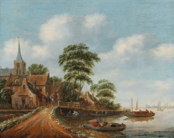A village on the banks of a river by Thomas Heeremans is a hand-painted oil painting reproduction on canvas painted by one of our highly skilled artists. All of our Thomas Heeremans oil painting reproductions are meticulously painted to the highest museum quality by our master artists utilizing the finest quality oil paints on artist grade cotton canvas.