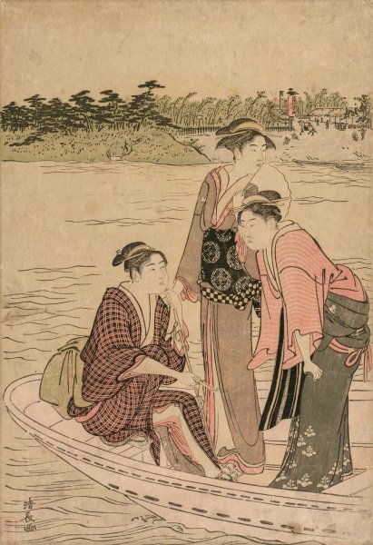 Passengers in a Ferry Boat on the Sumida River by Torii Kiyonaga is a hand-painted oil painting reproduction on canvas painted by one of our highly skilled artists. All of our Torii Kiyonaga oil painting reproductions are meticulously painted to the highest museum quality by our master artists utilizing the finest quality oil paints on artist grade cotton canvas.