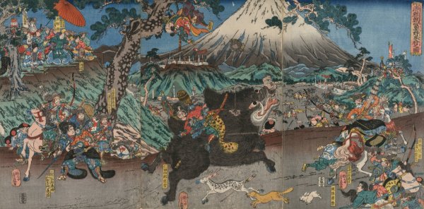 Picture of Minamoto no Yoritomo's Hunt on the Slopes of Mount Fuji by Utagawa Yoshifuji is guaranteed to be hand-painted on canvas by a master artist that has years of training and experience in capturing every brushstroke detail, color palette, and overall beauty of the original oil painting.