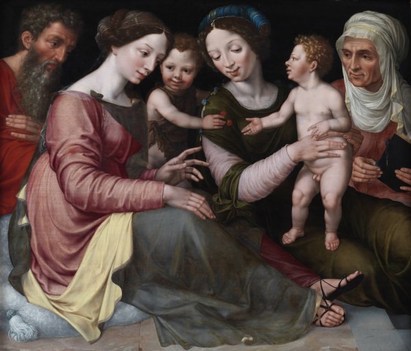 The Holy Family with the Infant St John, St Elizabeth and St Anna by Vincent Sellaer is a hand-painted oil painting reproduction on canvas painted by one of our highly skilled artists. All of our Vincent Sellaer oil painting reproductions are meticulously painted to the highest museum quality by our master artists utilizing the finest quality oil paints on artist grade cotton canvas.