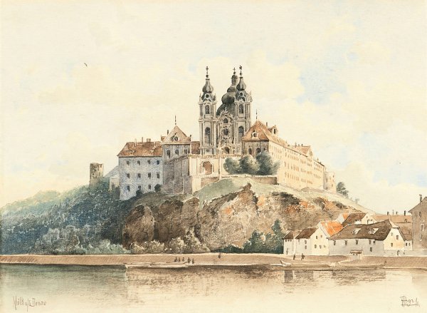 Melk Abbey, On The Danube by Vincenz Hawlicek is a hand-painted oil painting reproduction on canvas painted by one of our highly skilled artists. All of our Vincenz Hawlicek oil painting reproductions are meticulously painted to the highest museum quality by our master artists utilizing the finest quality oil paints on artist grade cotton canvas.