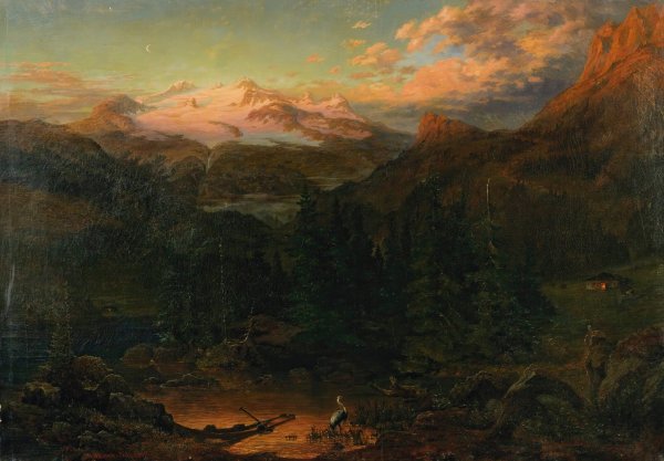 Mountains In The Moonlight by William Heine is a hand-painted oil painting reproduction on canvas painted by one of our highly skilled artists. All of our William Heine oil painting reproductions are meticulously painted to the highest museum quality by our master artists utilizing the finest quality oil paints on artist grade cotton canvas.