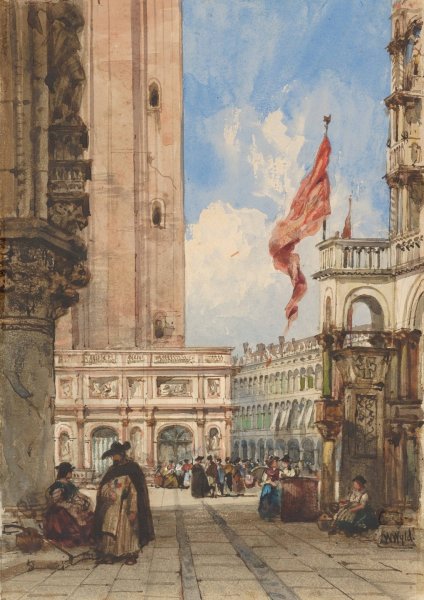 St. Mark's Square, Venice, with Loggetta by William Wyld is a hand-painted oil painting reproduction on canvas painted by one of our highly skilled artists. All of our William Wyld oil painting reproductions are meticulously painted to the highest museum quality by our master artists utilizing the finest quality oil paints on artist grade cotton canvas.
