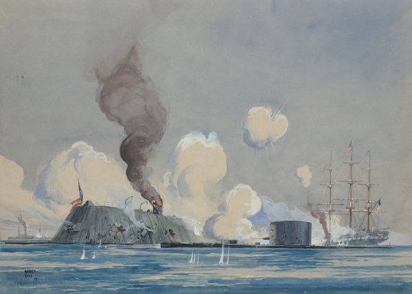 Action between U.S.S. Monitor and C.S.S. Ram Merrimac, in Hampton Roads, VA; Civil War by Worden Wood is guaranteed to be hand-painted on canvas by a master artist that has years of training and experience in capturing every brushstroke detail, color palette, and overall beauty of the original oil painting.